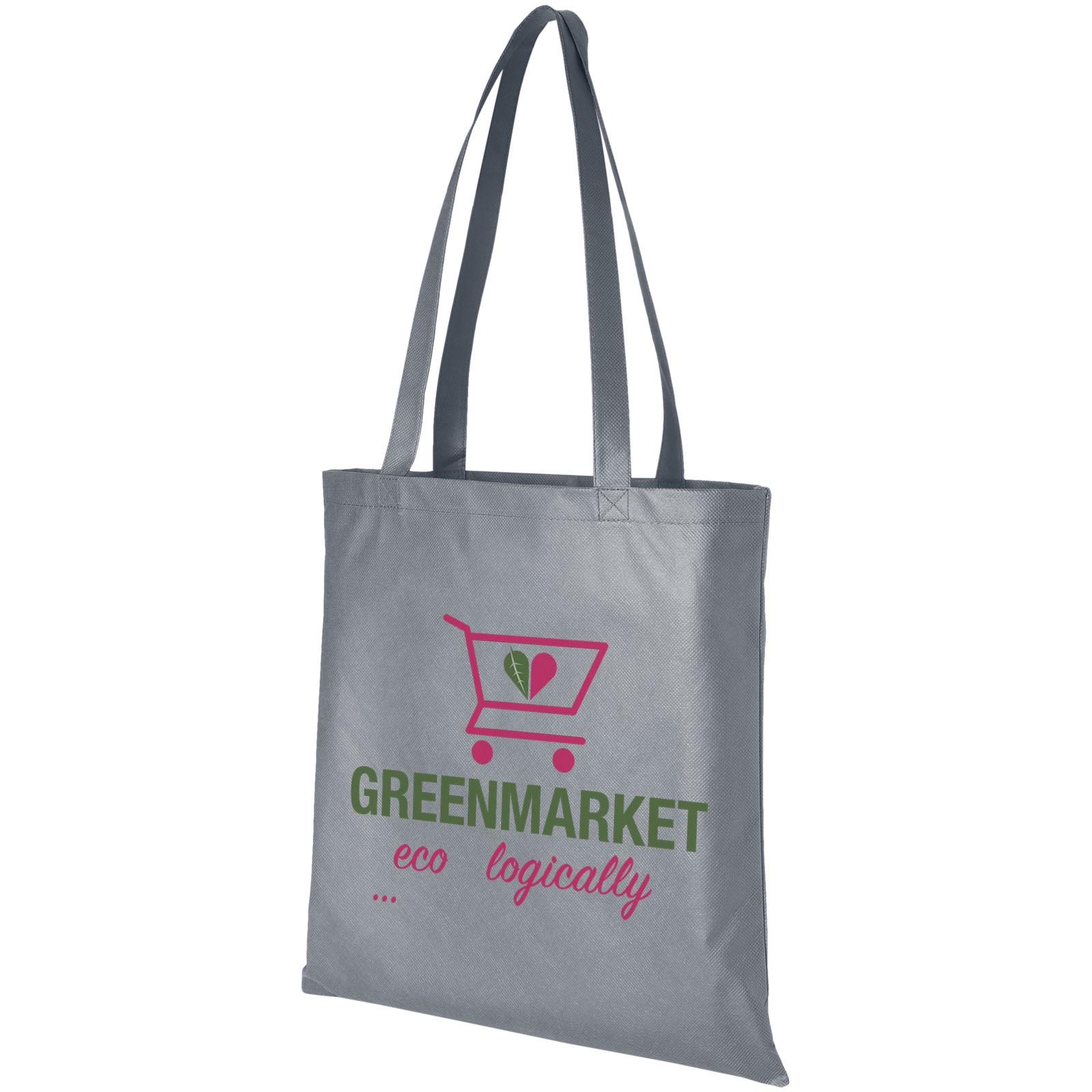Sie brauchen eine gute Tasche für eine Messe oder Konferenz? Die große Non Woven Tasche Zeus ist die perfekte Wahl. Ihr schlankes Design macht sie zu einem eleganten Modell, das sich für den Transport von leichten Gegenständen wie einem Notebook und einem Stift eignet. Die Henkel sind 29 cm lang und können daher leicht über der Schulter getragen werden. Belastbar bis zu 5 kg.
