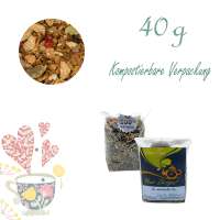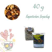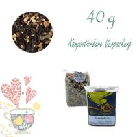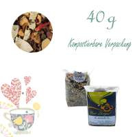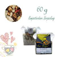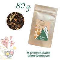 Zutaten: Grüner Tee (56%), Zimtzucker (20%) (Zucker, Karamellzucker, Glukosesirup, Zimt), weiße Schokoladen-Sterne (15%) (Zucker, Kakaobutter, VOLLMILCHPULVER, Emulgator: Sonnenblumenlecithin), Aroma, Orangenschalen, Rosenblütenblätter,...