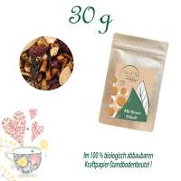 Zutaten: Apfelstücke (67%), Kamillenblüten (20%), Zimtstücke (10%), Aroma.