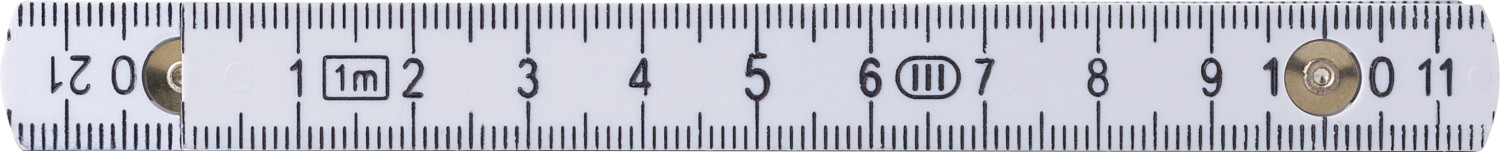 Zollstock aus Kunststoff, faltbar, Gesamtlänge: 1 Meter. Skalierung ist nur auf einer Seite des Artikels bedruckt.