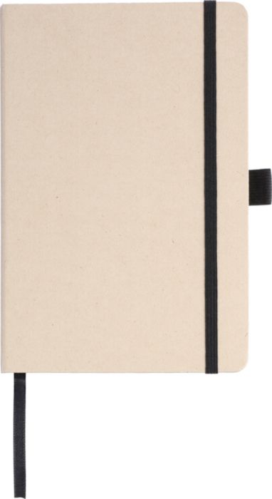 Notizbuch aus Zuckerrohr (ca. A5) mit 80 linierten Seiten (80 g / m2) aus Zuckerrohr. Mit Gummiband, Stiftschlaufe und Lesebändchen. Geprägtes Zuckerrohr-Logo auf der Rückseite.