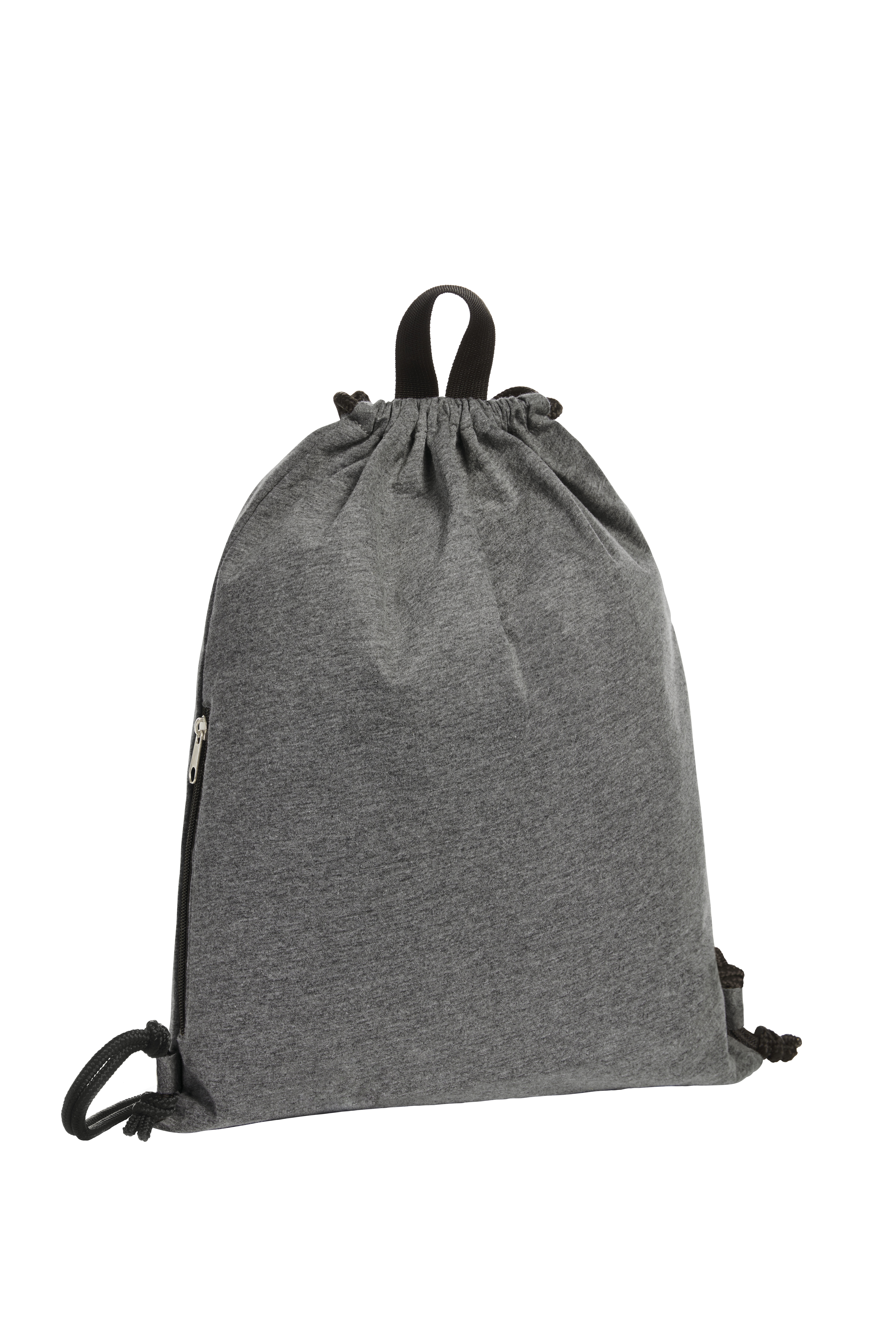 Großer Zugbeutel-Rucksack aus angenehm feinem Jersey; Hauptfach mit seitlicher Reißverschluss-Tasche; Kordelzug; Trageschlaufe