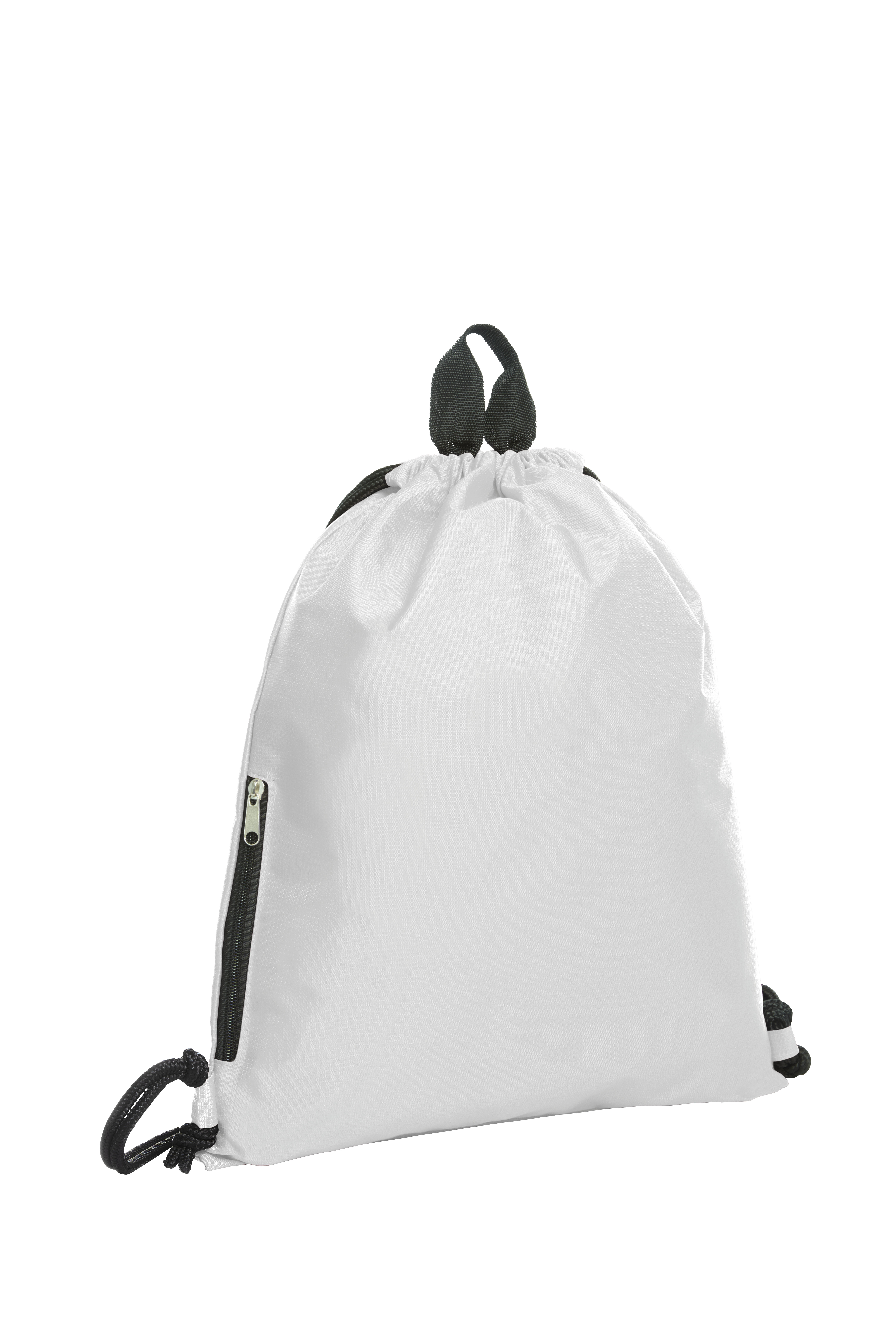 Großer Zugbeutel-Rucksack; Hauptfach mit seitlicher Reißverschluss-Tasche; Kordelzug; Trageschlaufe