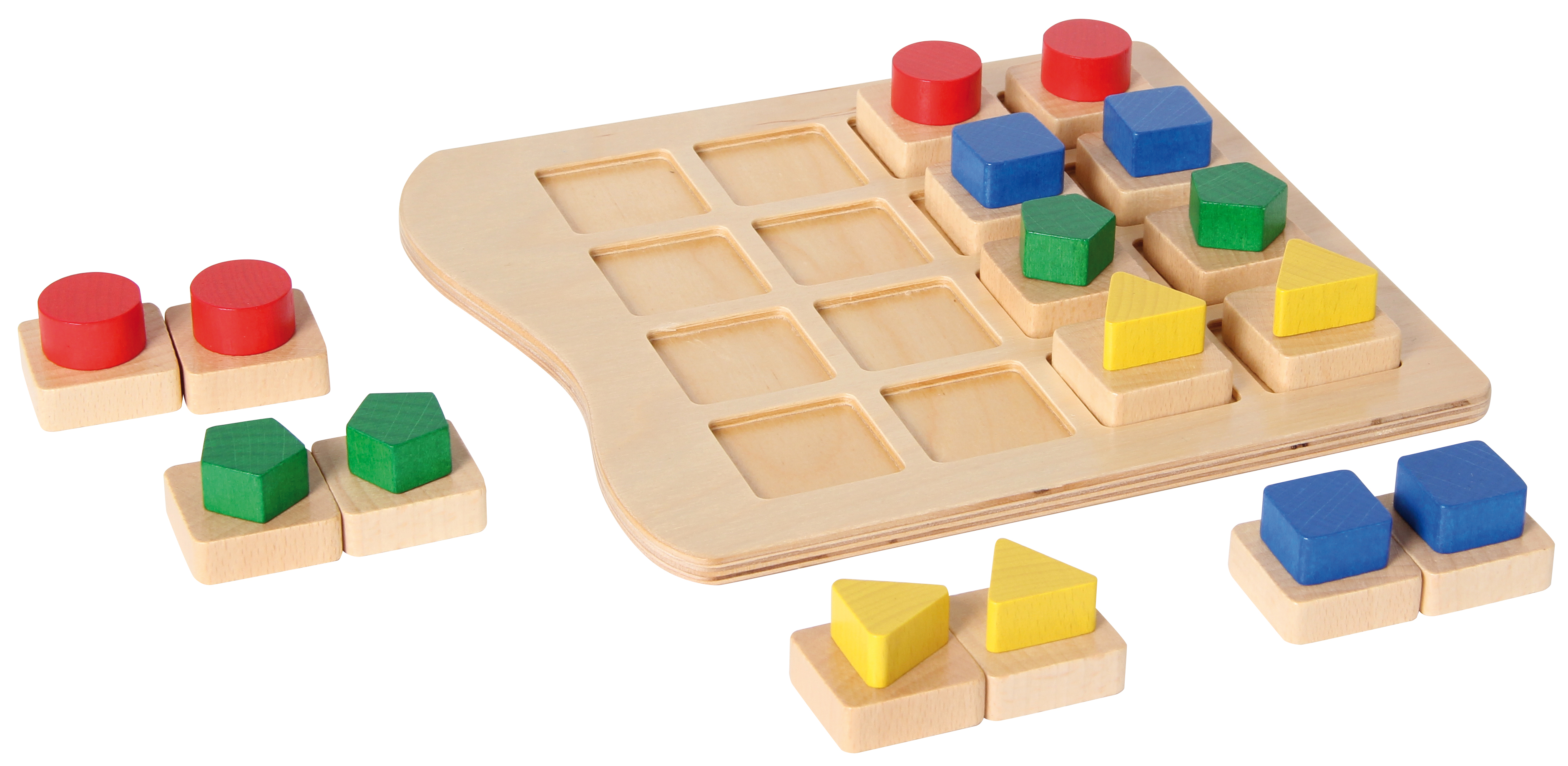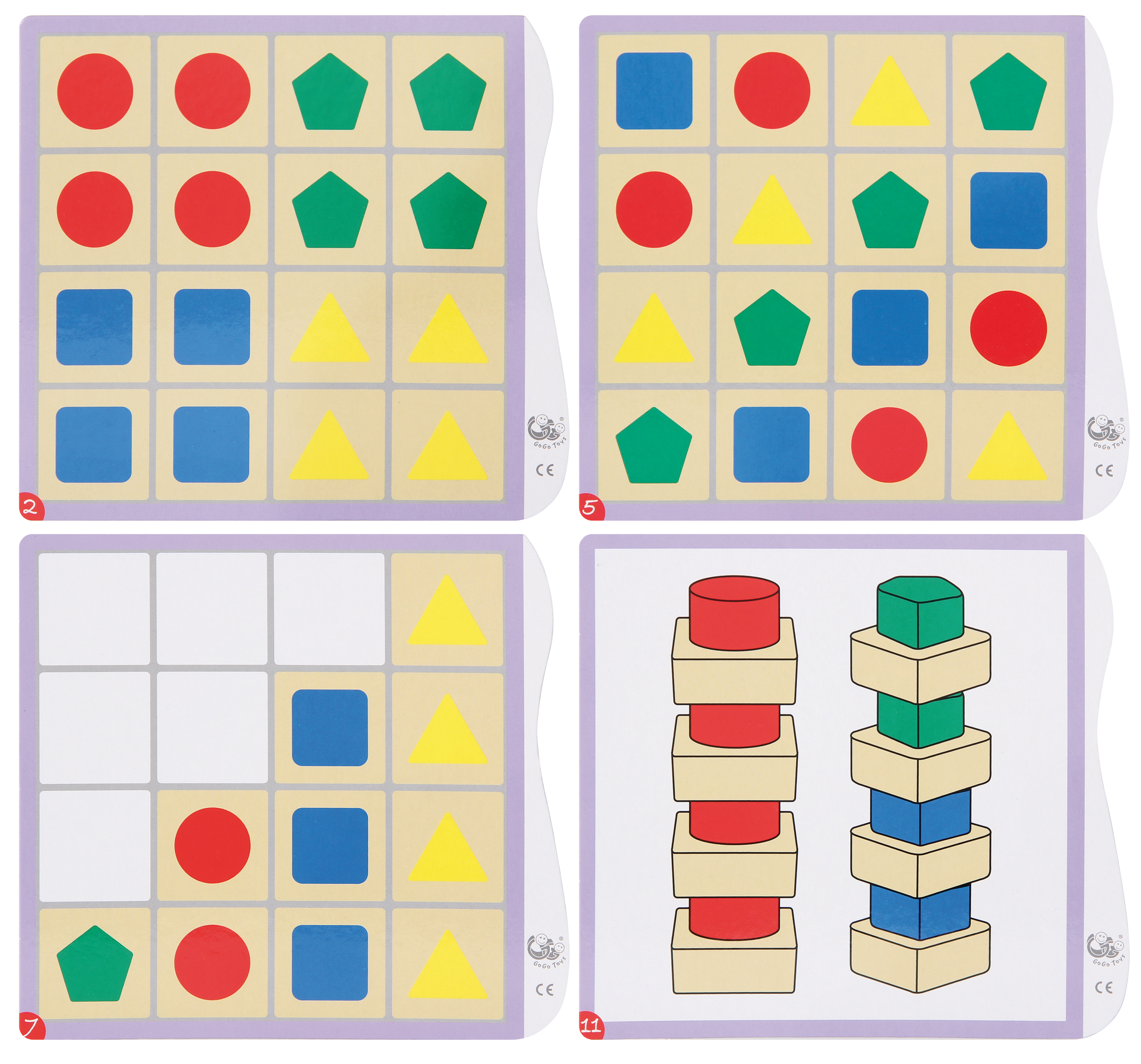 Ein kreatives Spiel aus 16 griffigen, bunten Holzteilen zum kreativen Gestalten und zum Nachbilden der Aufgaben auf den 12 Vorlagenkarten. Auf Grund der ansteigenden Schwierigkeitsgrade bietet das Spiel über Monate eine abwechslungsreiche Herausforderung und fördert die kreative und motorische Entwicklung der Kinder.
