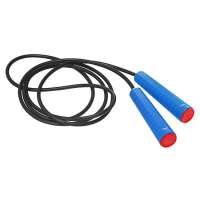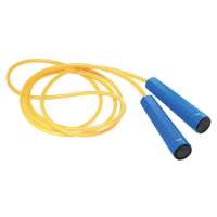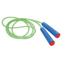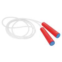 PVC-Sportspringseil (270 cm) mit Kunststoffgriffen. Wird einzeln in einem RPET-Polyester Beutel geliefert.