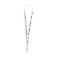 Schlüsselband aus RPET-Polyester mit Metallkarabiner und Sicherheitsverschluß.