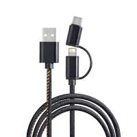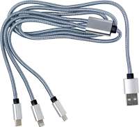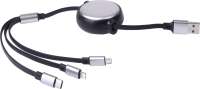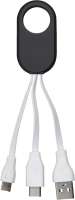 Wir entwickeln ein 3-in-1-Ladekabel mit USB-C, Lightning und Micro-USB in einem Gehäuse mit großzügiger Druckfläche. Die Verpackung besteht aus Recyclingkarton – ebenfalls mit Aufdruck im CI-Design.