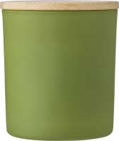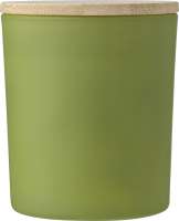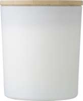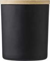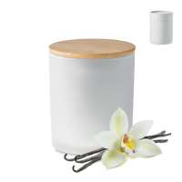Wachskerze im Glas mit Deckel aus Bambus. Aroma: Vanille. Verpackt in einem Papierschuber. Ø 8cm. Brenndauer: 40 Stunden. Bambus ist ein natürliches Produkt, es kann daher zu leichten Abweichungen in Farbe, Dekor und Maßen kommen.240gr.