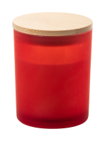 Glaskerze mit pflanzlichem Wachs und einem Deckel aus Bambus. Die Kerze enthält hauptsächlich Wachs auf pflanzlicher Basis (Carnaubawachs) und hat eine Brenndauer von etwa 20 Stunden. Vier Düfte je nach Glasfarbe: Zimt (rot), Vanille...
