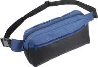 Gürteltasche aus 600D HD mit einem Hauptfach mit Doppelreißverschluss und einer Tasche mit Reissverschluss auf der Rückseite. Befestigt wird diese mit einem verstellbaren Gurt mit Steckschnalle. 220 x 120 mm
