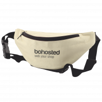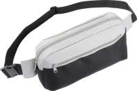 Einfache Gürteltasche aus Snow Polyester mit verstellbarem Gurt, einem Haupt- und einem Vorfach. Ihre Werbung wird unterhalb des Reißverschlusses gedruckt.