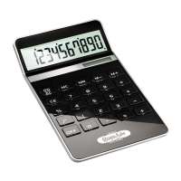 Geschwungener und formschöner Tischrechner mit Dualpower (Solar und Batterie). Die Seiten des Taschenrechners sind farblich abgesetzt und bilden einen angenehmen Kontrast zur schlichten schwarzen Oberfläche. Die flachen Tasten des...