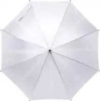 Automatik-Stockschirm aus Polyester (170T), Krücke und Tips aus Kunststoff, Schaft, Gestell und Spitze aus Metall.