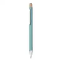 Druckkugelschreiber aus recyceltem Aluminium. Drücker mit Bambus, Clip aus Metall. Blaue Tinte.