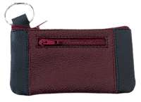 Geräumige Schlüsseltasche aus weichem Ziegenleder mit Vorfach und aufgesetzten Ecken. Rest- / Verschnitt Leder aus unterschiedlichen Produktionen, gebugt, gefüttert, VPE 500. Reißverschlüsse, 30mm Schlüsselring