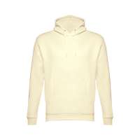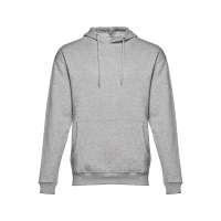Sweatshirt aus 50% Baumwolle und 50% Polyester (320g / m²), unisex mit einer Kapuze mit Kordelzug. Innen kardiert, 1 x 1 Ripp, Bund an Ärmel und einer Kängurutasche. Größen: XS, S, M, L, XL, XXL