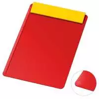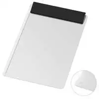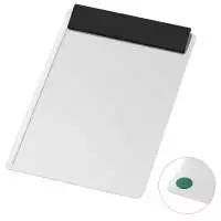 Klemmbrett aus Kunststoff, ca. DIN A4-Format, mit Metall-Klammer.