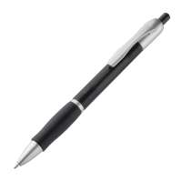 Druckkugelschreiber mit blau schreibender Mine und weicher Griffzone aus Gummi. Ihre Werbung drucken wir auf den gefrosteten Schaft.