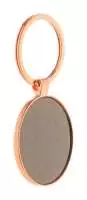 Runder Metallschlüsselanhänger mit goldfarbener Oberfläche mit Gunmetal-Plättchen. Einzeln in Kraftpapierbox.