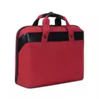 Ansprechende, zweifarbige Laptop-Mappe; gepolstertes Hauptfach mit seitlich umlaufendem 2-Wege-Reißverschluss zum leichten Befüllen; Reißverschluss-Vortasche; flaches Einsteckfach auf Front und Rückseite; versenkbare Tragegriffe