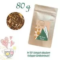 Zutaten: Rotbuschtee (85%), Sanddornbeeren (10%), Aroma, Sonnenblumenblüten.