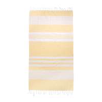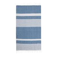 Strandtuch mit Fransen, ein Must-Have für jeden Strand- oder Schwimmbadbesuch. Material: 80% Polyester / 20% Baumwolle. Ihre Werbung wird in eine Ecke gedruckt.