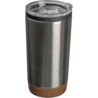 Eleganter doppelwandiger Isolierbecher aus Edelstahl mit 600 ml Fassungsvolumen und schickem Korkboden. Der perfekte Begleiter für Unterwegs. Ihre Werbung lasern wir auf den Becher.