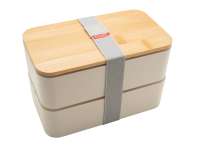 Lunchbox mit doppeltem Fach. Zwei Behälter aus Polypropylen und zwei Trennwände aus Polyethylen für eine bessere Abdichtung. Deckel aus Bambus. Kompatibel (ohne Deckel) mit Spülmaschine (max. 50 °C), Gefrierschrank und Mikrowelle (max....