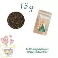 Ein Schwarztee aus der Provinz Yunnan mit gleichmäßigem Blatt und einigen goldfarbenen Blattspitzen. Aufgegossen ist seine Tassenfarbe dunkelrot. Daher wird diese Art von Tee in China auch "Hongcha" (roter Tee) genannt. Diese Tassenfarbe...