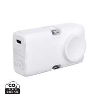 Externer Zusatzakku mit Ladekapazität von 5.000 mAh, integriertem 5W kabellosen Ladegerät und Magsafe-Magnetbefestigung, die es ermöglicht, das Gerät während des Ladens zu verwenden. Hergestellt aus robustem ABS mit gummiertem Touch....