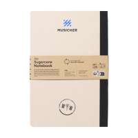 Notizblock mit festen Cover, hergestellt aus recycelten Milchkartons. Beinhaltet 80 Blätter in naturfarbener gestreifter Ausführung, mit elastischem Band und farbigen Lesezeichen. Enthält "Recycled Milk Carton"-Kennzeichnung auf der...