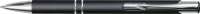 Druckkugelschreiber aus Metall mit silbernen Applikationen und blau schreibender Großraummine. Ihre Werbung wird rechts vom Clip gelasert.